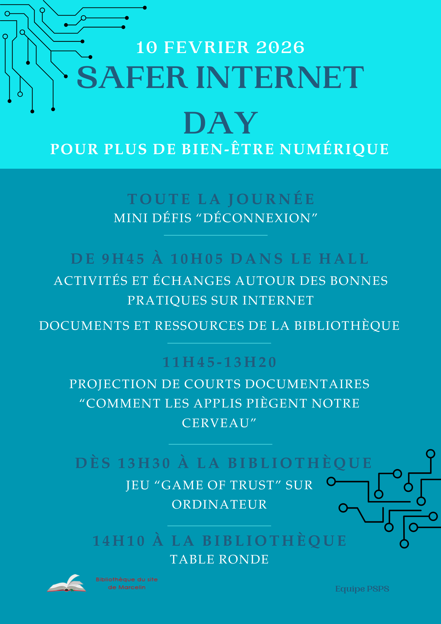 L’équipe PSPS et la Bibliothèque du site de Marcelin se sont réunies dans l’idée de construire un partenariat sur la longue durée. C’est dans ce contexte qu’est né le projet des « Journées Internationales », une initiative visant à offrir aux élèves des moments de réflexion, de sensibilisation et d’échange autour de certaines thématiques sociales et contemporaines.